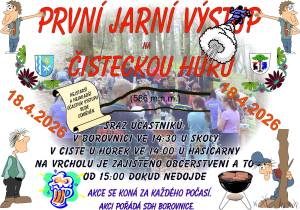 Na První jarní výstup na Čisteckou hůru zve SDH Borovnice. Tato tradiční akce se koná 18. dubna 2026 za každého počasí. Na vrcholu opět nebude chybět občerstvení.